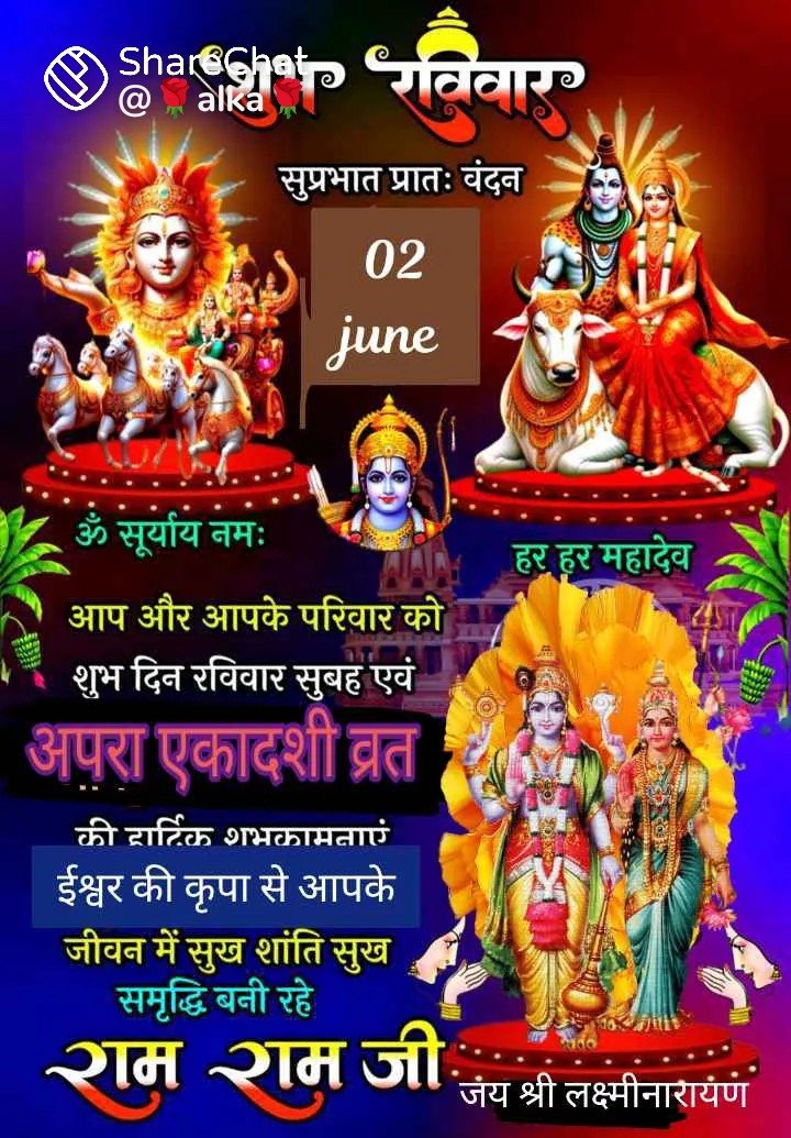 🌤️ *तिथि – एकदशी 03 जून रात्रि 02:41 तक तत्पश्चात द्वादशी*