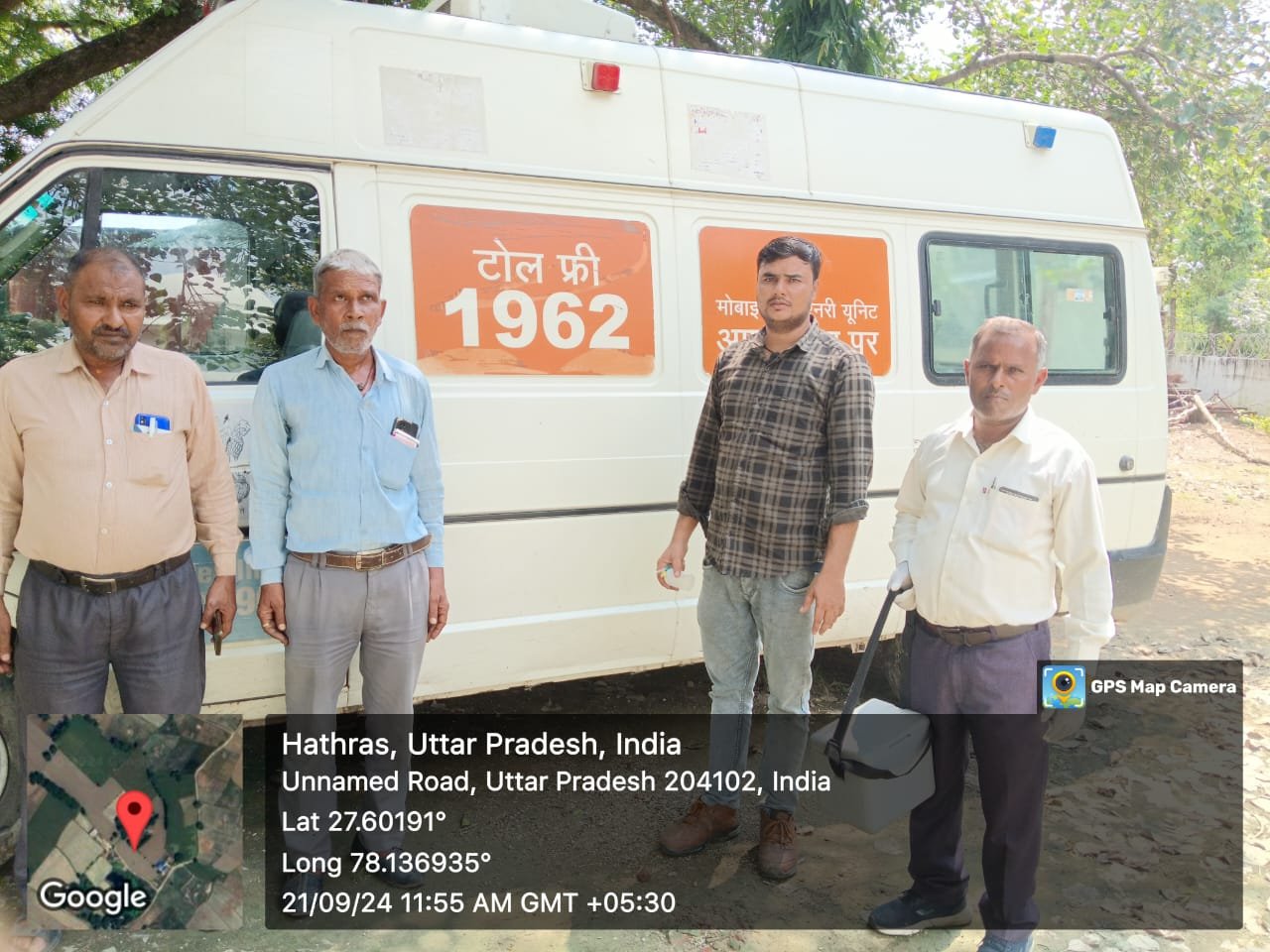 1962 मोबाइल वैटनरी यूनिट के द्वारा गौवँशीय प्रजाति मे एल.एस.डी.टीकाकरण एम्बुलेंस टीम केद्वारा किया गया