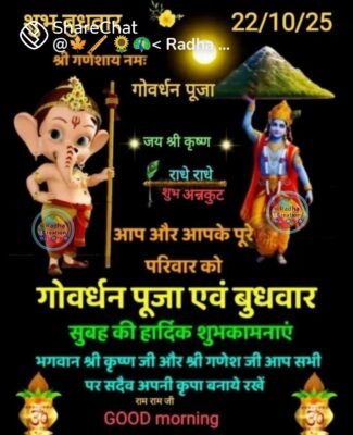 🚩 *व्रत पर्व विवरण – कार्तिक शुक्ल प्रतिपदा (पूरा दिन शुभ मुहूर्त),गुजराती नूतन वर्ष वि•सं॰ 2082 प्रारंभ बलि प्रतिपदा,गोवर्धन पूजा,गौक्रीडा,अन्नकूट*