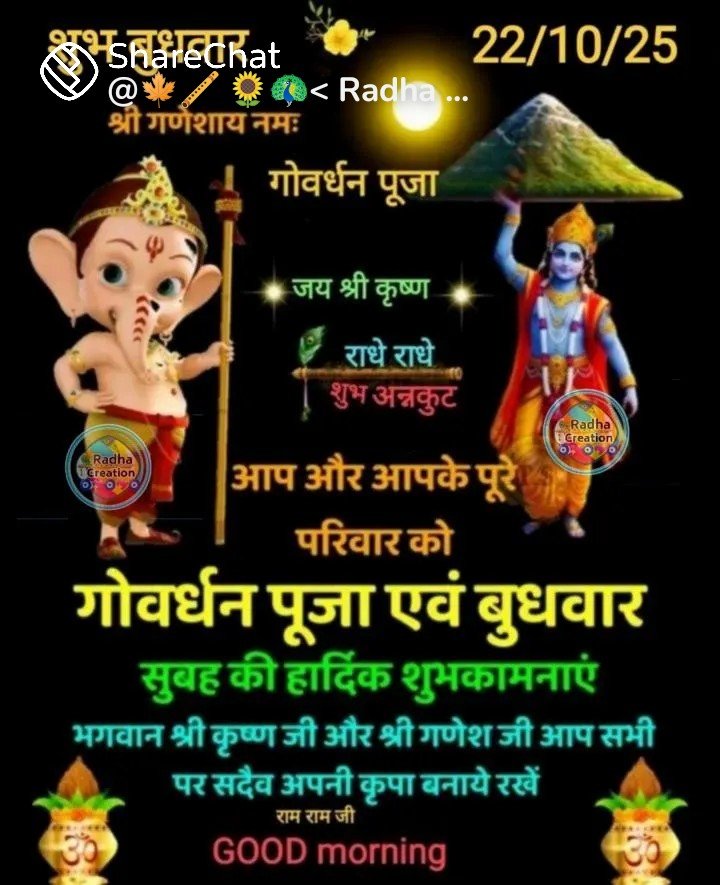 🚩 *व्रत पर्व विवरण – कार्तिक शुक्ल प्रतिपदा (पूरा दिन शुभ मुहूर्त),गुजराती नूतन वर्ष वि•सं॰ 2082 प्रारंभ बलि प्रतिपदा,गोवर्धन पूजा,गौक्रीडा,अन्नकूट*
